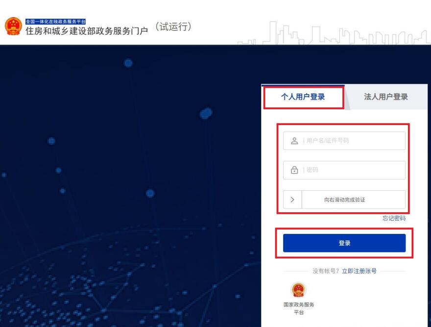 在“住房和城鄉建設部政務服務門戶”頁面(圖1),點擊【登錄】(圖3)進入登錄界面(圖4)。