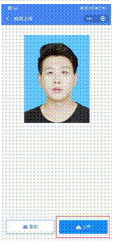 拍照完成后,如果您對當前照片滿意,請點擊【上傳】按鈕,即為您制作證件照。如不滿意,可點擊【重拍】重新拍攝或上傳新的照片。