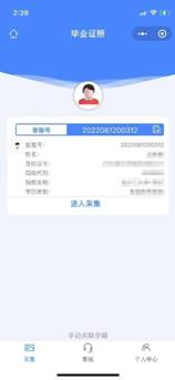 7.使用【畢業證照】小程序掃描圖像采集碼即可開始采集。