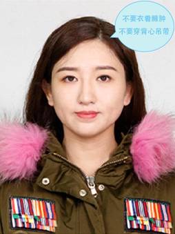5、穿單色有領衣服,著正裝,避免復雜圖案、花紋,不要衣著臃腫,不要穿無袖,吊帶、低胸衫、奇裝異服,因圖像采集背景為藍色,禁止穿藍色衣服。