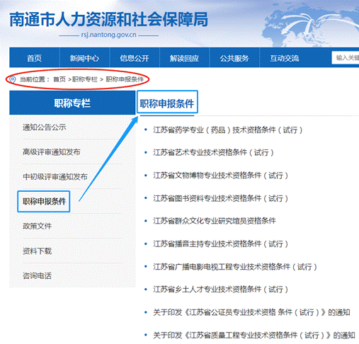 其余系列專業評審申報條件均可登錄“南通市人社局官網”: