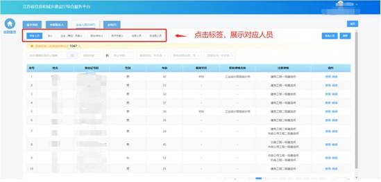 點(diǎn)擊不同人員類型的標(biāo)簽,可以展示相關(guān)的人員。