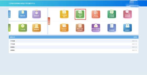 點(diǎn)擊首頁“企業(yè)管理”模塊中“工程設(shè)計(jì)”圖標(biāo)可進(jìn)入工程設(shè)計(jì)資質(zhì)功能模塊頁進(jìn)行相關(guān)業(yè)務(wù)維護(hù)和辦理。