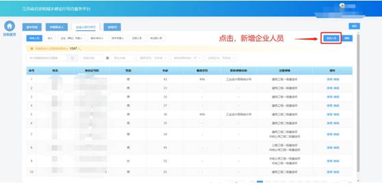在企業(yè)人員頁面中維護(hù)企業(yè)人員信息。其中,注冊人員信息為系統(tǒng)自動同步,無需企業(yè)手動添加。