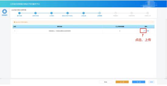 部分申請事項(xiàng)需要企業(yè)在申請流程中上傳與本次申請相關(guān)的附件,則申報流程會包含“上傳材料”環(huán)節(jié)。在“上傳材料”環(huán)節(jié)頁面上傳本次申請要求的附件,上傳完成后點(diǎn)擊“下一步”進(jìn)入下一個環(huán)節(jié)。
