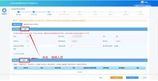 在“人員情況”環(huán)節(jié)頁面,企業(yè)按照所申請資質(zhì)類別分別選擇對應(yīng)的各類人員。選擇的人員信息為企業(yè)在“企業(yè)信息維護(hù)”頁面已經(jīng)維護(hù)的對應(yīng)角色的人員,如有信息不正確或者信息缺失,需返回“企業(yè)信息維護(hù)”頁面進(jìn)行修改或補(bǔ)充后,再繼續(xù)進(jìn)行申請。