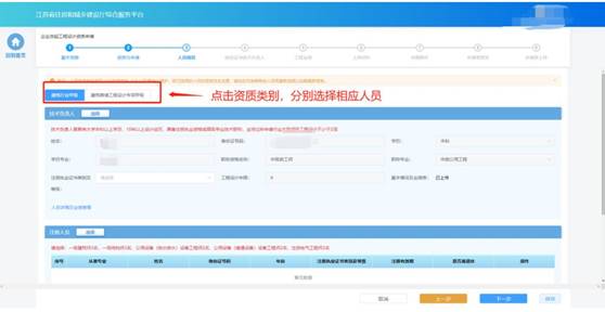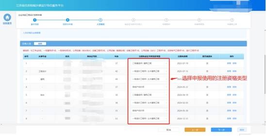 資質(zhì)申請需要的人員選擇完成后,點(diǎn)擊“下一步”按鈕,系統(tǒng)會按照所
