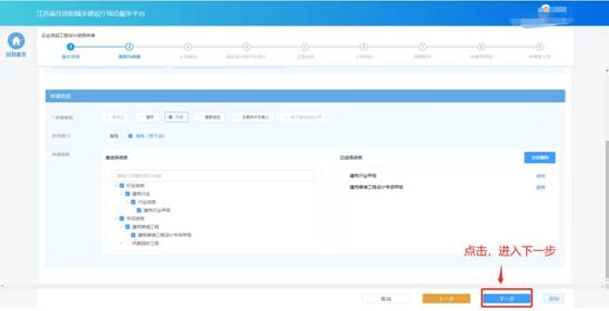 完成事項(xiàng)和資質(zhì)選擇后,點(diǎn)擊“下一步”進(jìn)入下個環(huán)節(jié)。