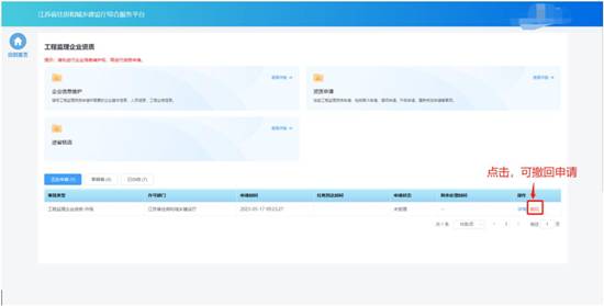 “正在申請”板塊中展示企業(yè)端已經(jīng)提交的、目前處于審核流程中的事項(xiàng)申請。