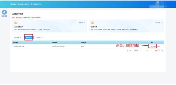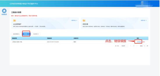 若企業(yè)在上傳蓋章掃描件之前退出了系統(tǒng),下次可在“草稿箱”板塊點(diǎn)擊“繼續(xù)填報”進(jìn)入申請頁面繼續(xù)上傳蓋章掃描件。