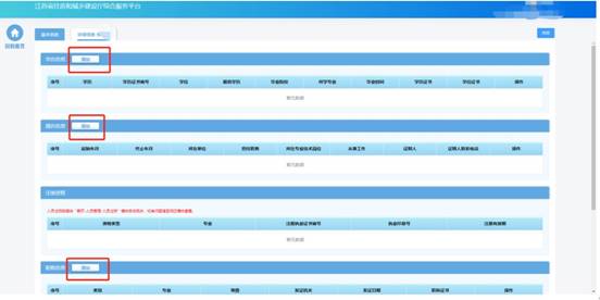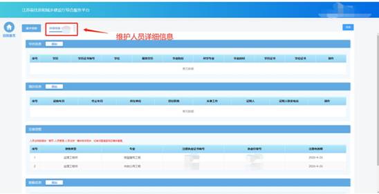 基本信息保存成功后,會出現(xiàn)詳細(xì)信息頁面,用于維護當(dāng)前人員的詳細(xì)信息如學(xué)歷信息、職稱信息、簡歷信息、注冊資格、技術(shù)工人技能證書、個人業(yè)績信息等。
