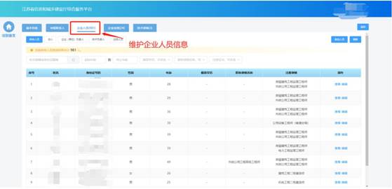 在企業(yè)人員頁面中維護企業(yè)人員信息。其中,注冊人員信息為系統(tǒng)自動同步,無需企業(yè)手動添加。