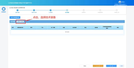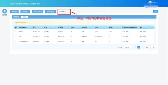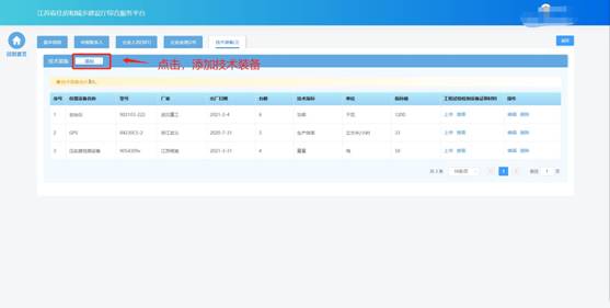 在技術(shù)裝備頁面中維護企業(yè)技術(shù)裝備信息。