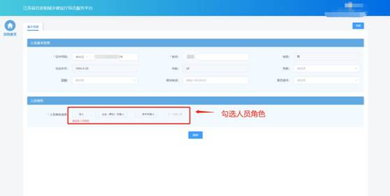 在“人員角色”板塊勾選人員對應(yīng)的角色,并填寫角色對應(yīng)的工作信息、上傳對應(yīng)的附件。其中,注冊人員角色為系統(tǒng)根據(jù)人員的注冊資格情況自動勾選,不可由企業(yè)手動選擇。