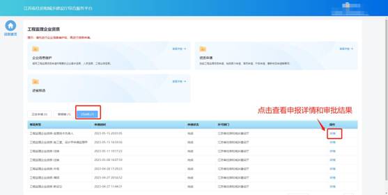 “詳情”可查看審批結(jié)果和申報內(nèi)容。