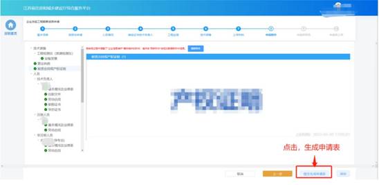“申報附件”環(huán)節(jié)頁面展示本次申請相關(guān)的附件信息,部分附件信息來自于企業(yè)信息維護模塊維護的附件,部分附件來自于申報過程中在“上傳材料”環(huán)節(jié)上傳的附件。確認(rèn)附件內(nèi)容后,點擊“提交生成申請表”則系統(tǒng)自動生成申請表并進入申請表預(yù)覽頁面。