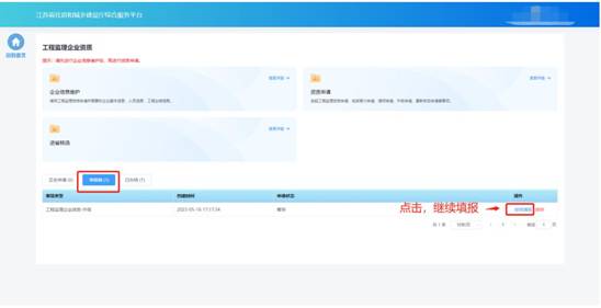 “草稿箱”板塊展示企業(yè)暫存的、未提交的事項申請,點擊列表記錄中的“繼續(xù)填報”可進入申請頁面繼續(xù)填報。