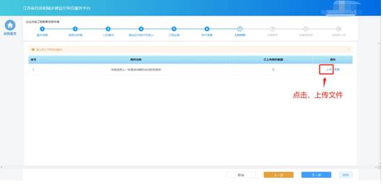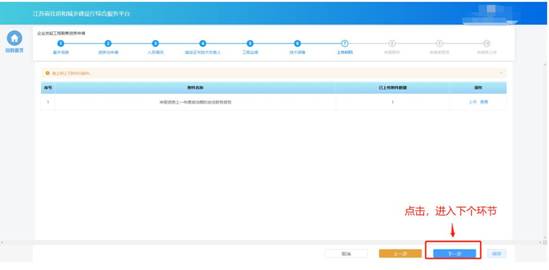 部分申請事項需要企業(yè)在申請流程中上傳與本次申請相關(guān)的附件,則申報流程會包含“上傳材料”環(huán)節(jié)。在“上傳材料”環(huán)節(jié)頁面上傳本次申請要求的附件,上傳完成后點擊“下一步”進入下一個環(huán)節(jié)。