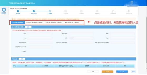 資質(zhì)申請需要的人員選擇完成后,點擊“下一步”按鈕,系統(tǒng)會按照所