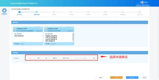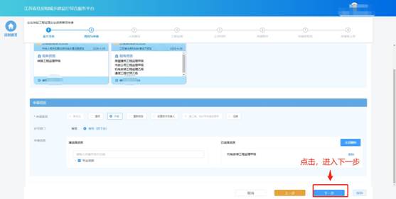 完成事項和資質(zhì)選擇后,點擊“下一步”進入下個環(huán)節(jié)。