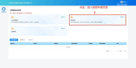 在進行企業(yè)信息維護后,點擊工程監(jiān)理企業(yè)資質(zhì)功能模塊頁中“資質(zhì)申請”進入資質(zhì)申請頁面。
