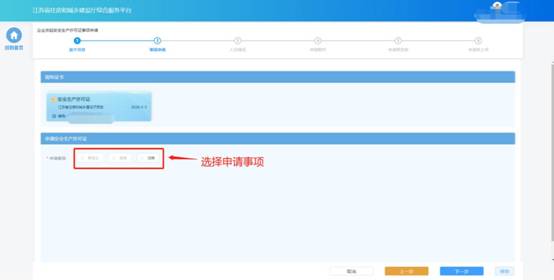 在“申請安全生產許可證”板塊選擇申請事項,各類事項的選項僅當符