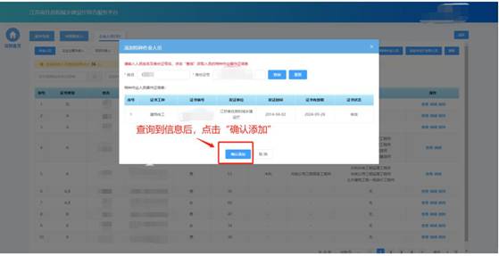 在添加頁面中需要輸入姓名和身份證號從特種作業人員庫中查詢到特種