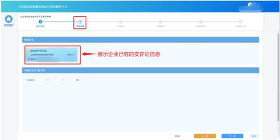 現有證書板塊展示當前企業已有的安全生產許可證信息,若沒有安許證則不展示。