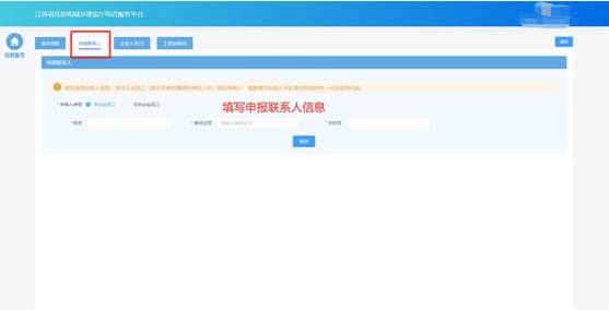 在申報聯(lián)系人頁面中填寫申報聯(lián)系人信息。