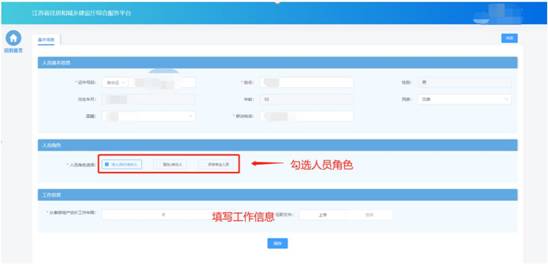 在“人員角色”板塊勾選人員對應的角色,并填寫角色對應的工作信息、