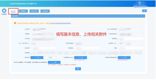 在基本信息頁面中填寫企業(yè)基本信息。
