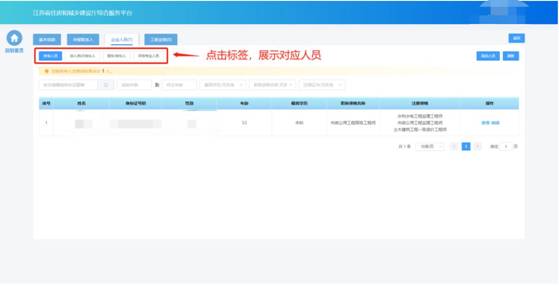 點擊不同人員類型的標簽,可以展示相關(guān)的人員
