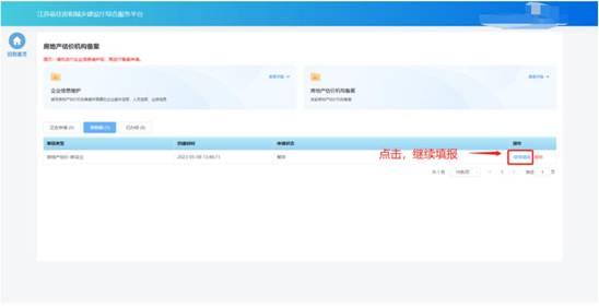 列表記錄中的“繼續(xù)填報”可進入申請頁面繼續(xù)填報。