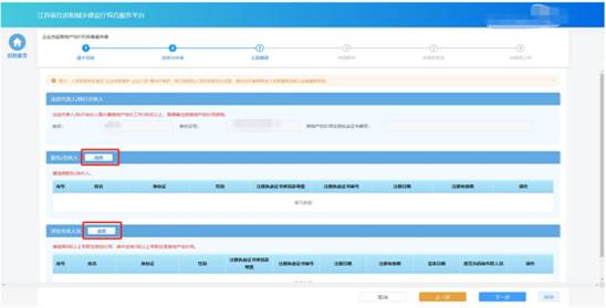 在股東/合伙人、評估專業(yè)人員模塊下點擊“選擇”按鈕分別選擇對應人員。