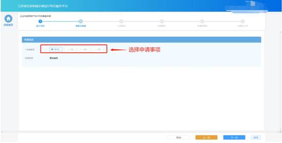 在“資質(zhì)與申請”環(huán)節(jié)頁面,企業(yè)選擇申請事項。