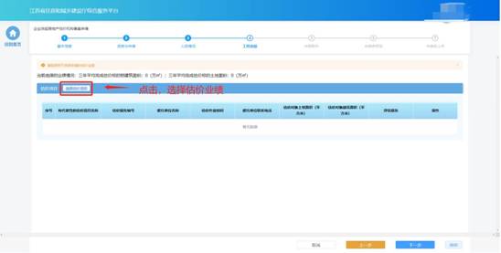 若申請的資質(zhì)對于業(yè)績有要求,則申報流程會包含“業(yè)績”環(huán)節(jié)。在“業(yè)績”環(huán)節(jié)頁面選擇用于本次申請的估價業(yè)績,選擇完成后點擊“下一步”進入下一個環(huán)節(jié)。