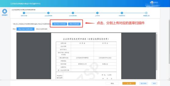 在“上傳材料”環(huán)節(jié)頁(yè)面根據(jù)變更的具體情況上傳對(duì)應(yīng)的附件,上傳完成后點(diǎn)擊“下一步”進(jìn)入下一個(gè)環(huán)節(jié)。