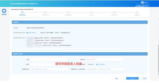 n 填寫(xiě)申報(bào)聯(lián)系人信息,若申報(bào)人類型為非本企業(yè)員工,還需要填寫(xiě)所屬單位名稱和統(tǒng)一社會(huì)信用代碼。