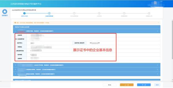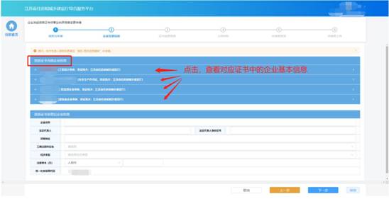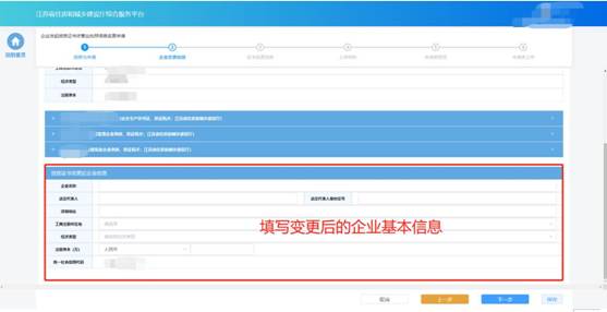 在“企業(yè)變更信息”環(huán)節(jié)頁(yè)面,企業(yè)可查看帶變更的所有資質(zhì)證書(shū)上的企業(yè)基本信息,同時(shí)需要輸入變更后的企業(yè)基本信息。