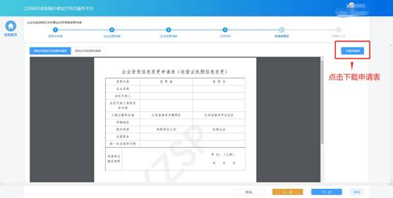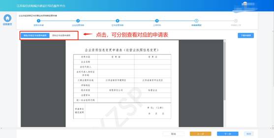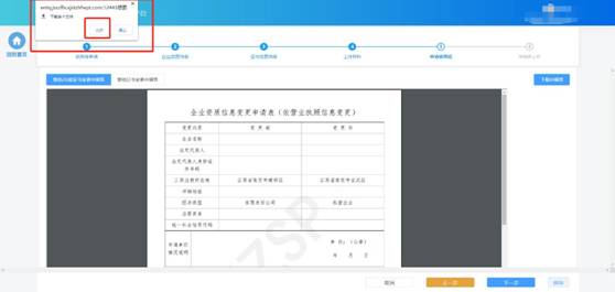 企業(yè)需要將全部的申請(qǐng)表打印后進(jìn)行蓋章,然后點(diǎn)擊“下一步”按鈕上