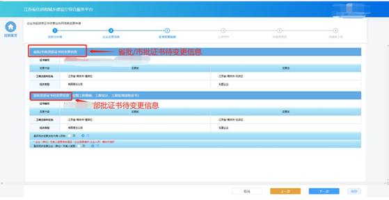 在“證書(shū)變更信息”環(huán)節(jié)頁(yè)面,企業(yè)確認(rèn)待變更的信息項(xiàng),省批/市批證書(shū),部批證書(shū)待變更信息分別展示: