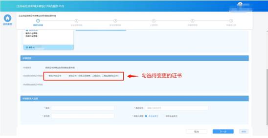 在“資質(zhì)與申請(qǐng)”環(huán)節(jié)頁(yè)面,企業(yè)選擇待變更的資質(zhì)證書(shū)。