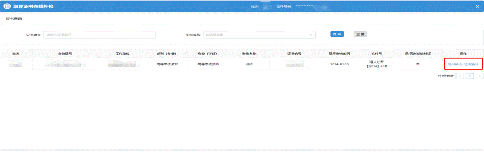 (1)選擇對應(yīng)的要補(bǔ)辦(換發(fā))的證書信息,點(diǎn)擊證書補(bǔ)辦或證書換發(fā)