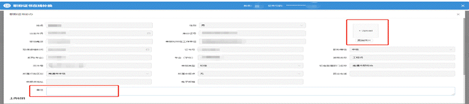 (2)頁面中上傳照片,在備注中填寫對職稱證書有異議的情況,點(diǎn)擊提交申請,等待人社部門審核即可。