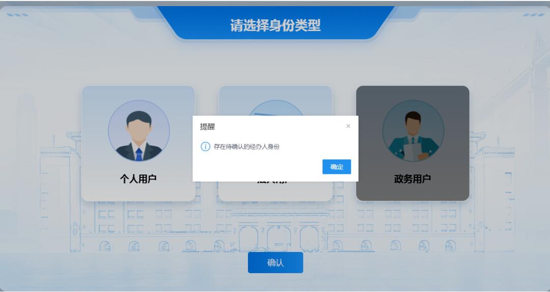 登錄經辦人賬號以后,會彈出“提醒”,存在待確認的經辦人身份。