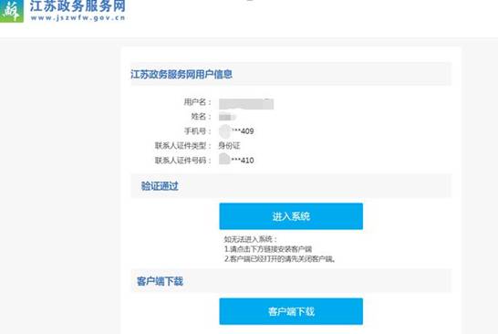 新用戶完成初始化后進行登錄,在政務網(wǎng)登錄后點擊“進入系統(tǒng)”(注:如首次登錄,請先點擊客戶端下載進行安裝)