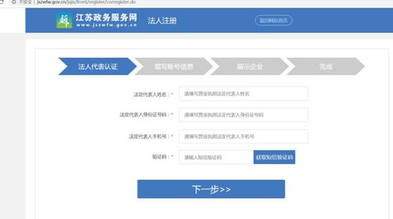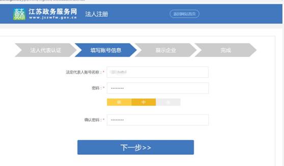 (2)需注冊的用戶點擊“注冊”按鈕,填寫法人相關信息,設置登錄賬號密碼