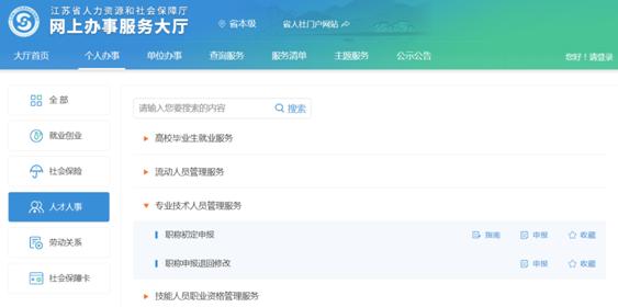 江蘇省人社廳一體化平臺職稱初定申報指南