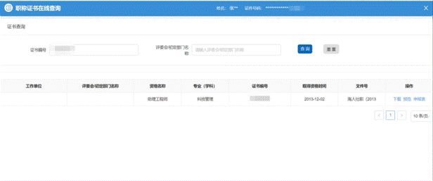 個人登錄查看本人的所有職稱證書信息,并可進行證書預覽、下載;