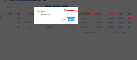 人員離開(kāi)本單位時(shí),檢驗(yàn)檢測(cè)機(jī)構(gòu)應(yīng)及時(shí)刪除人員信息。點(diǎn)擊【刪除】按鈕【確定】刪除。